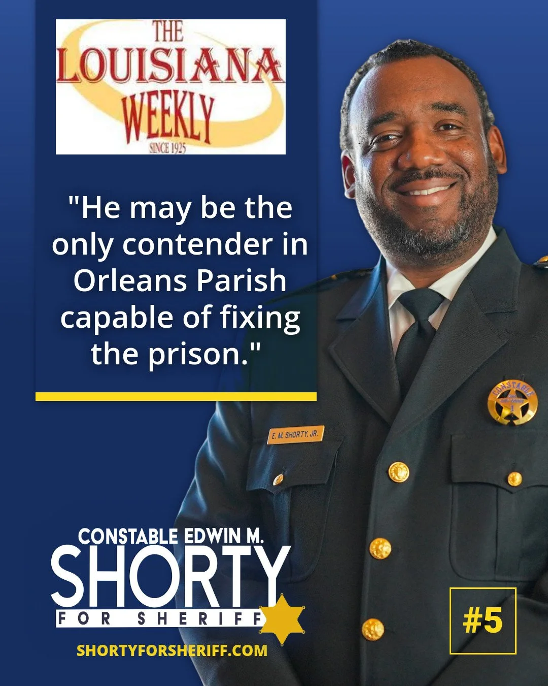 Attorney Edwin Shorty has been in private practices since 2003. He also currently serves as Constable for the 2nd City Court in Orleans Parish. A native son of New Orleans, Edwin Shorty attended Southern University at New Orleans where he graduated in 1999 with a degree in Business Administration. During his undergraduate years, Ed Shorty also held down a job as Deputy Sheriff with the Orleans Parish Criminal Sheriff's office, a position he said gave him life changing insight and connection to the people of the area.